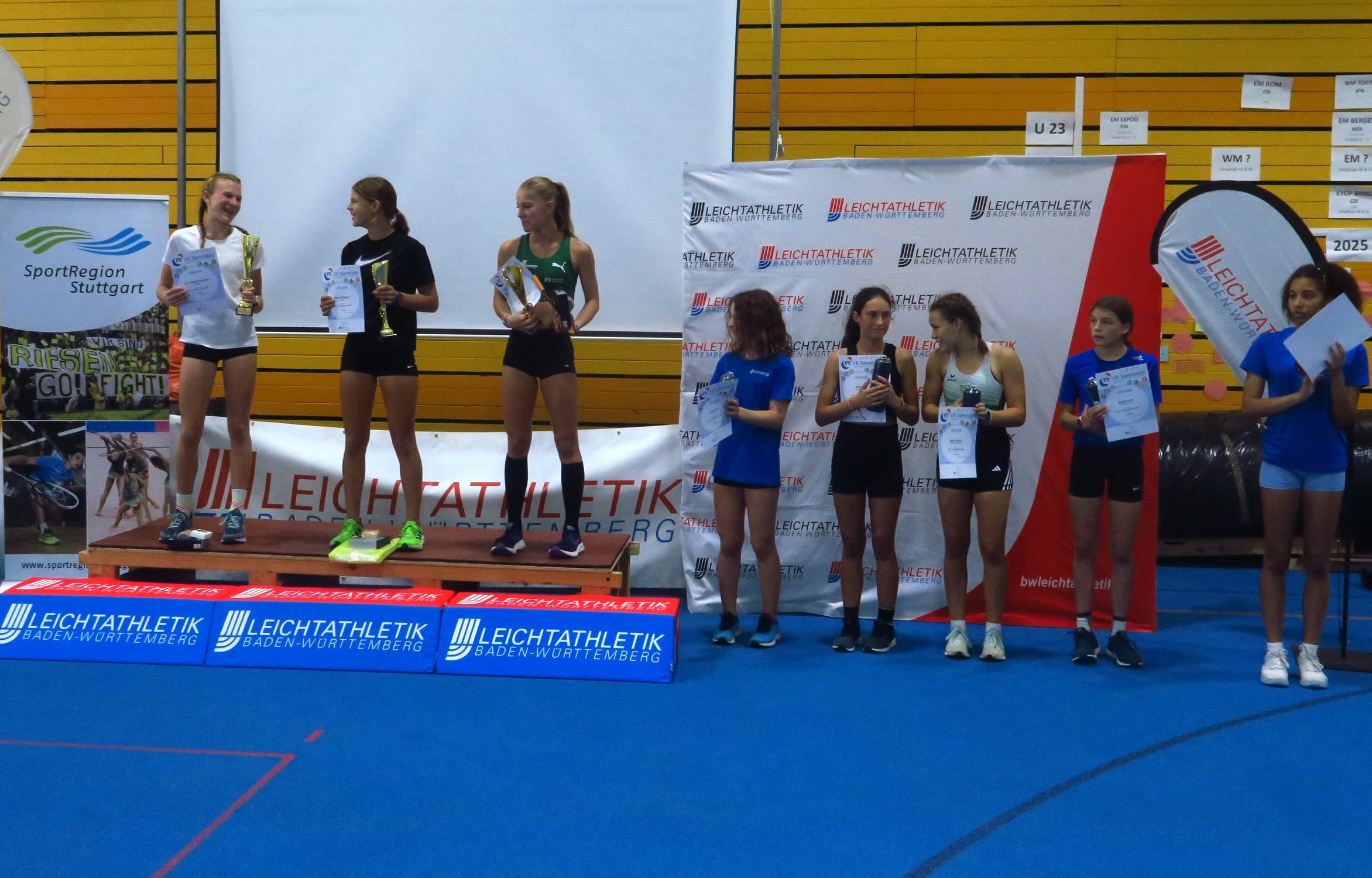 Danach wurde noch mal gepowert. An sechs Stationen ging es im Rundlauf durch das Grundlagentraining. Von koordinativen Grundelementen bis zu Reaktionsspielen mit den Blazepods, Turnelementen und dem Athletiktraining war alles dabei. Die mit Spannung erwartete Siegerehrung sah dann Lilly Steuber (VfL Waiblingen) in der großen Mädchenkonkurrenz vorn, vor Emilia Gramlich (LG Esslingen) und Jil Unrath (LV Pliezhausen 2012). Bei den Jungs sicherten sich Maximilian Xing (SpVgg Holzgerlingen), Ben Rüdinger (LG Filder) und Linor Seciri (TV Mühlacker) die ersten Plätze in den Sichtungslehrgängen an der Landessportschule Albstadt. Die Einladungen dafür gehen nach dem BLV-Talentsportfest am kommenden Wochenende in Mannheim raus.