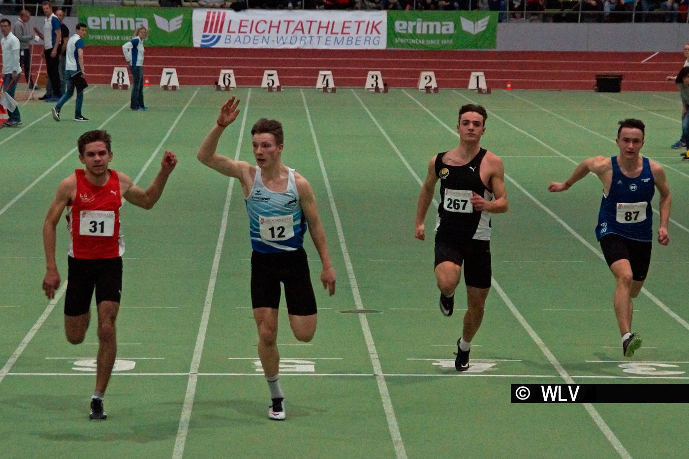 Spannende Entscheidungen gab es in den Staffelwettbewerben über 4x200 Meter zu sehen. Bei der männlichen Jugend U18 überraschte das Team des TSV 05 Reichenbach. Marc Hochstein, Tom Anderer, Philipp Grieß und Noah Koch brachten den Staffelstab in 1;34,35 Minuten als Schnellste über die vier Hallenrunden. Platz zwei ging an die LG Staufen (1:34,54 min), Dritte wurde die LG Region Karlsruhe (1:34,83 min). Das schnellste Staffelteam bei der weiblichen Jugend U18 stellte die MTG Mannheim. Shirlene Borne, Victoria Domogala, Lorina Hertlein und Fehintola Oladejo legten mit 1:43,53 Minuten eine Zeit vor, die von keiner anderen Staffel übertroffen wurde. Silber ging an die Sprinterinnen der LG Filder in 1:46,28 Minuten, Bronze an die LAV Stadtwerke Tübingen in 1:46,35 Minuten.