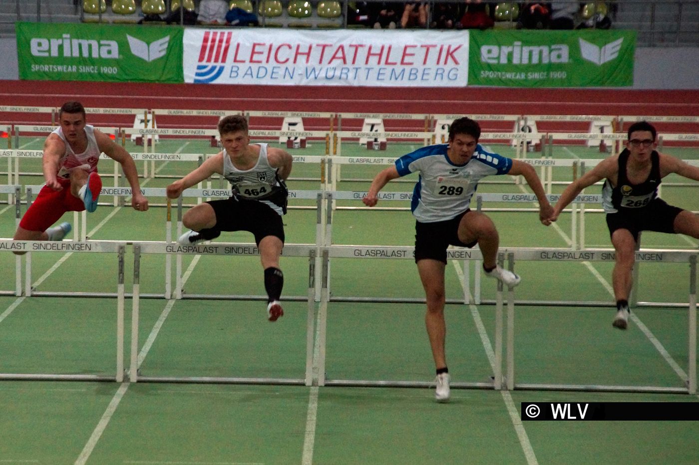 Schnellster Hürdensprinter im Glaspalast war Mehrkämpfer David Frank von der Spvgg Mössingen. Er legte über die 60 Meter Hürdendistanz 8,14 Sekunden vor und verwies damit Bruno Betz vom SSV Ulm 1846 (8,20 sec) und Tom Anderer vom TSV 05 Reichenbach (8,23 sec) auf die weiteren Medaillenplätze. Schnellste Hürdensprinterin der weiblichen Jugend U18 war Sandrina Sprengel von der LG Steinlach-Zollern in 8,75 Sekunden. Silber ging hier an Lorina Hertlein von der MTG Mannheim (8,85 sec), Bronze an Marie Jung vom SSV Ulm 1846 (8,87 sec).